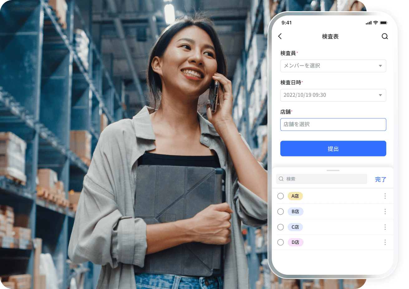 店舗管理や承認などの情報を紙やパソコンを 使わず、スマホ 1 台で報告できます。空欄を埋 めていくだけで完了するため操作も簡単。機材 に QR コードを貼り付けて連携もできるため、 記載漏れも防ぐことができます。
